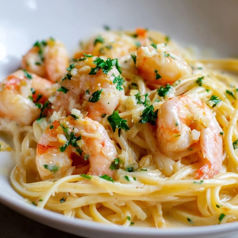 Pin it The smell of garlic hitting warm butter is what drew my neighbor to my kitchen window one Thursday evening. I was testing this shrimp pasta after a long day, and the aroma was so inviting she knocked on my door with a bottle of wine. We ended up eating together on my tiny balcony, twirling creamy linguine while the sun set. That spontaneous dinner taught me this dish has a magnetism beyond its ingredients.