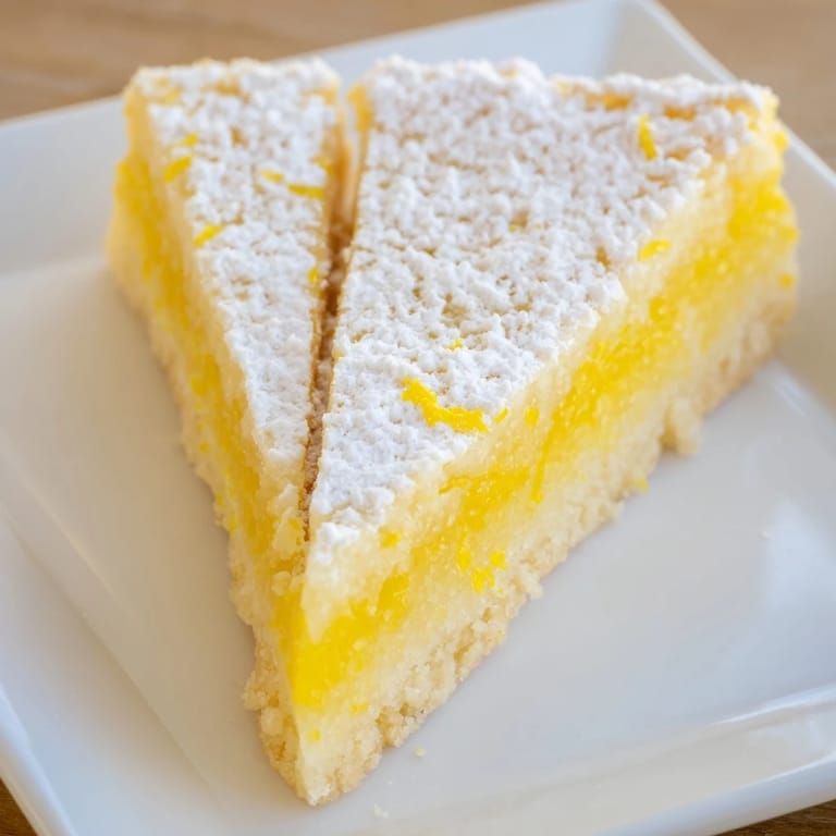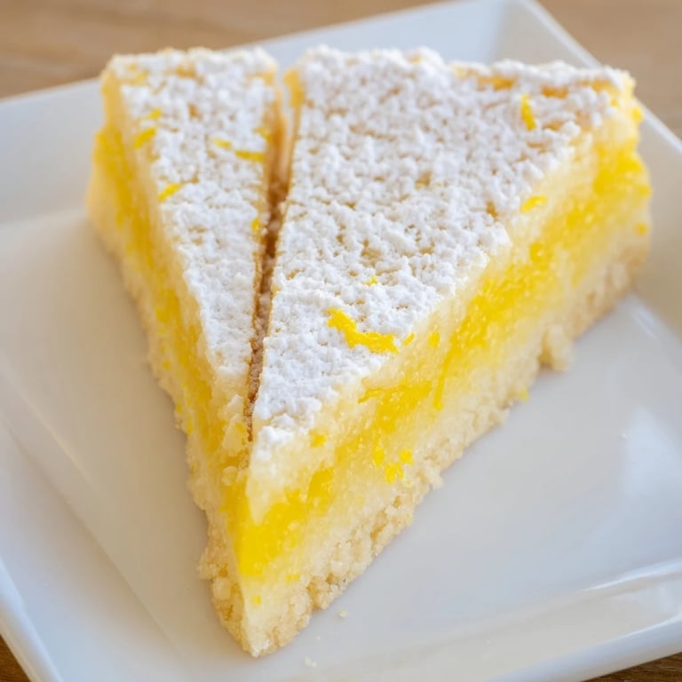 Pin it Bright, tangy lemon bars with a buttery shortbread crust, cut into elegant triangles for an easy, crowd-pleasing dessert.