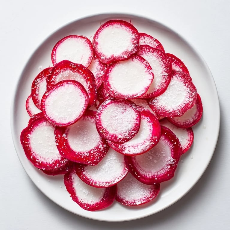 Pin it A crisp, refreshing snack featuring peppery radishes simply enhanced with flaky sea salt—perfect for a light appetizer or a healthy nibble.