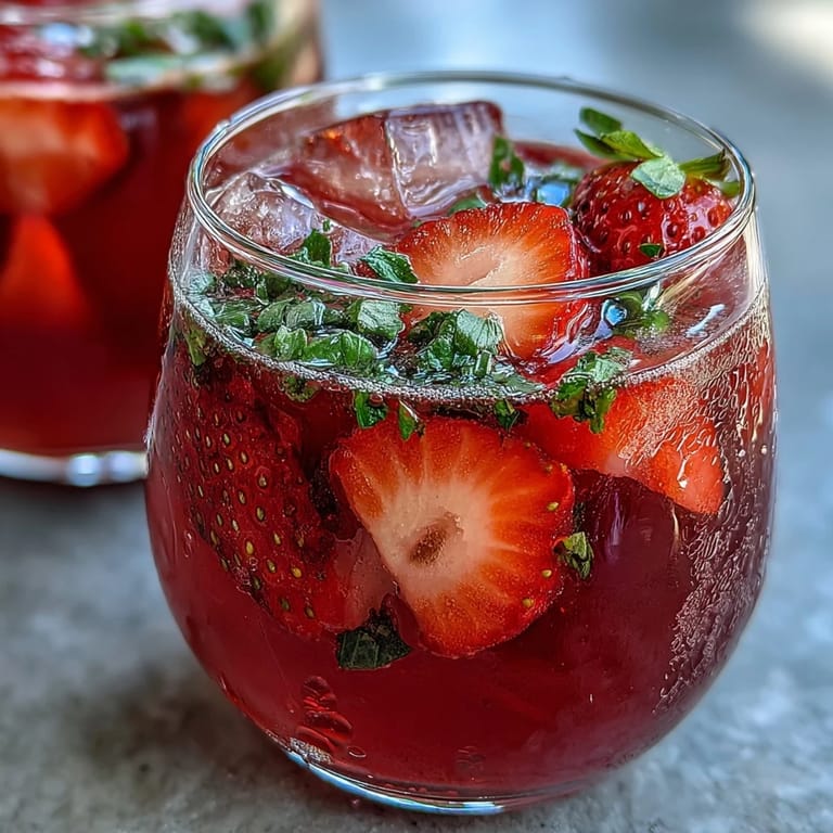 - Garnish each glass with fresh basil leaves and sliced strawberries.