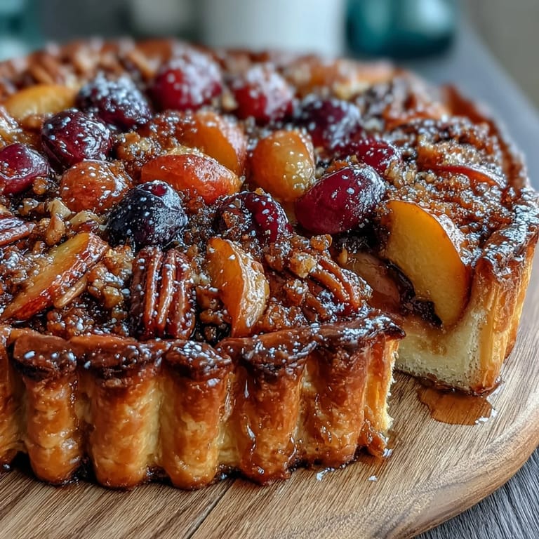 I served this to my parents on a Sunday evening when they visited, and my mom sat at the kitchen counter watching the whole assembly happen, commenting on how it looked like something she'd see at a French café. Then we pulled it from the oven and the pastry was this deep golden brown with fruit juice bubbling at the edges, and honestly, that moment made everything feel worth it. The smell alone—warm butter, caramelizing sugar, and those stone fruits softening—is worth making this dish.